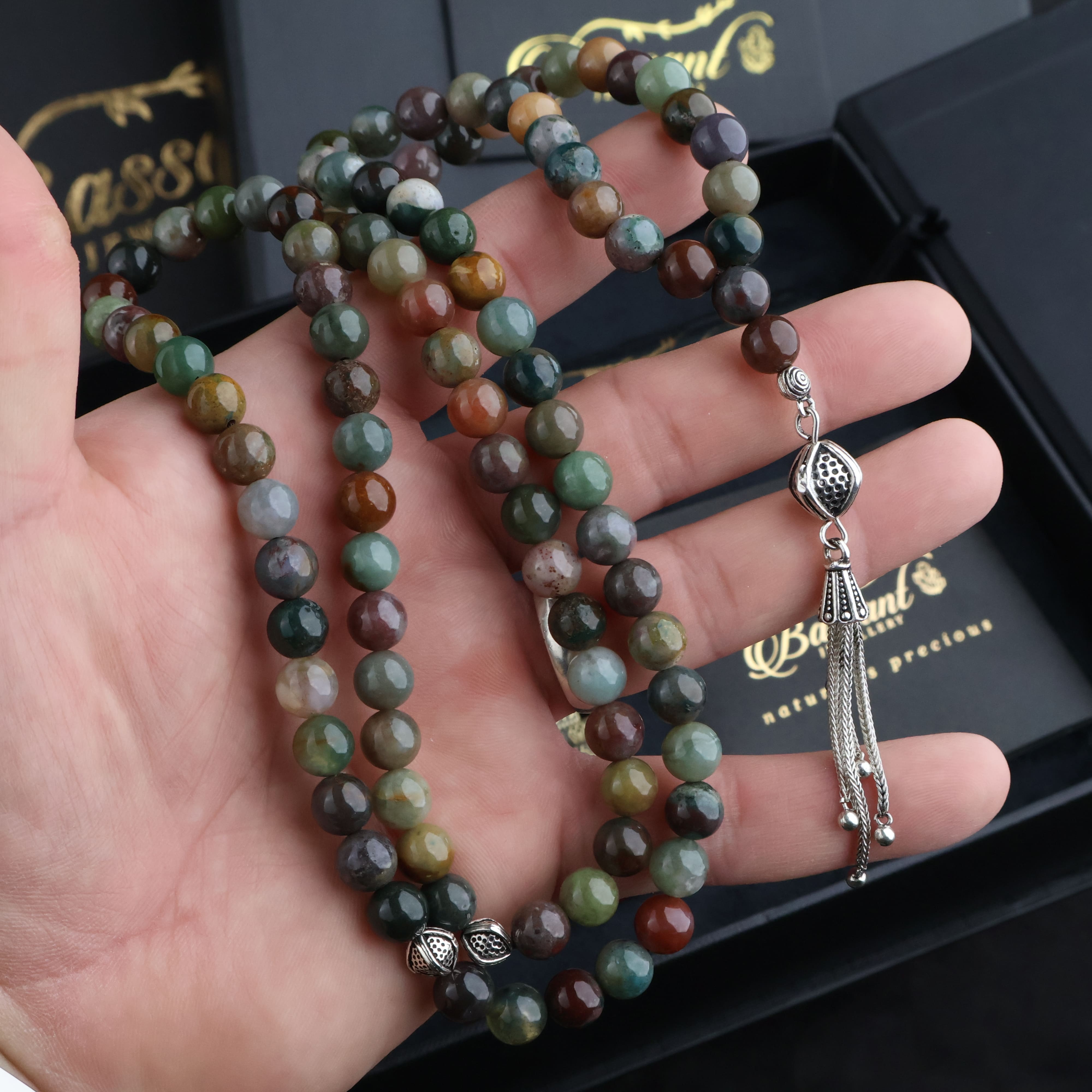◾ سبحة من حجر العقيق الأسود الطبيعي بأعلى جودة مع الفضة المستورة عيار ٩٢٥.