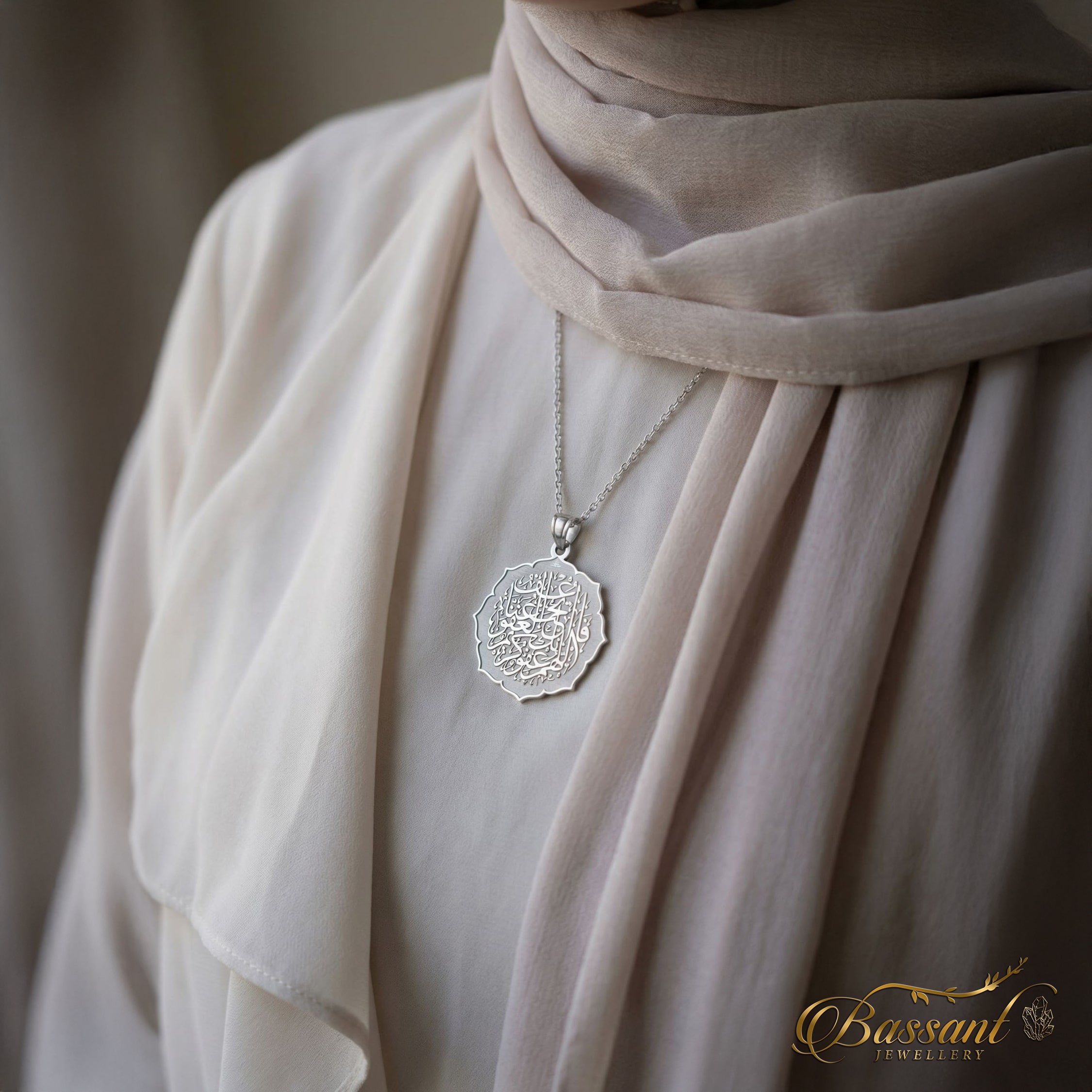 This finely-crafted pendant boasts exceptional artistry, featuring 925k Sterling Silver and expert laser-cutting methods. The elaborate pattern flawlessly displays " The do'aa of Al-kadr night ", Showcasing it as a masterpiece.