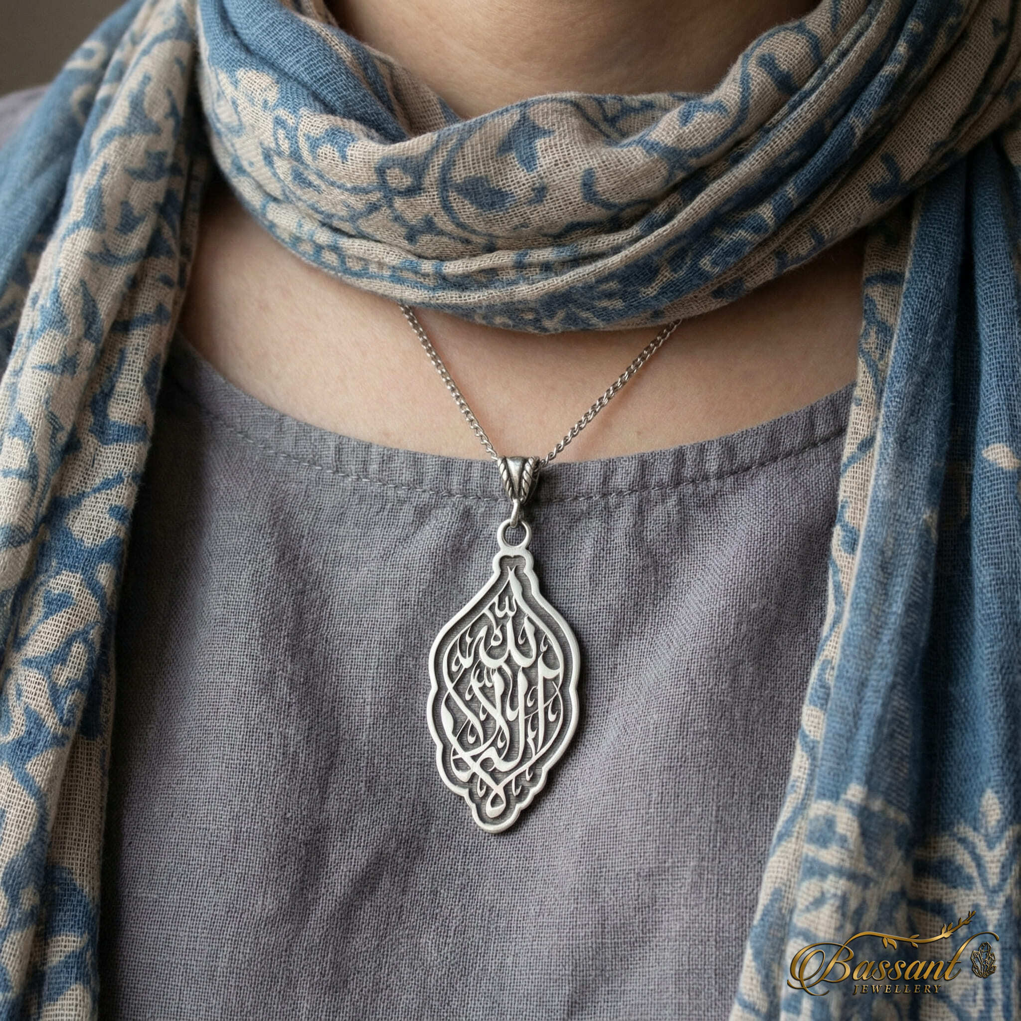 This finely-crafted pendant boasts exceptional artistry, featuring 925k Sterling Silver and expert laser-cutting methods. The elaborate pattern flawlessly displays " Al-tawheed ", Showcasing it as a masterpiece.