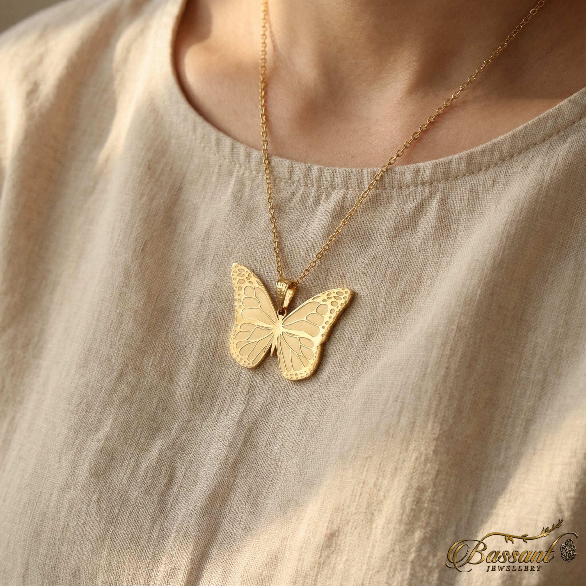 Expertly crafted with a 24k Gold-plated layer on 925k Sterling Silver. The flawless laser-cut detail showcases the beautiful " Butterfly " in an elaborate pattern, making it a stunning piece to add to any collection.