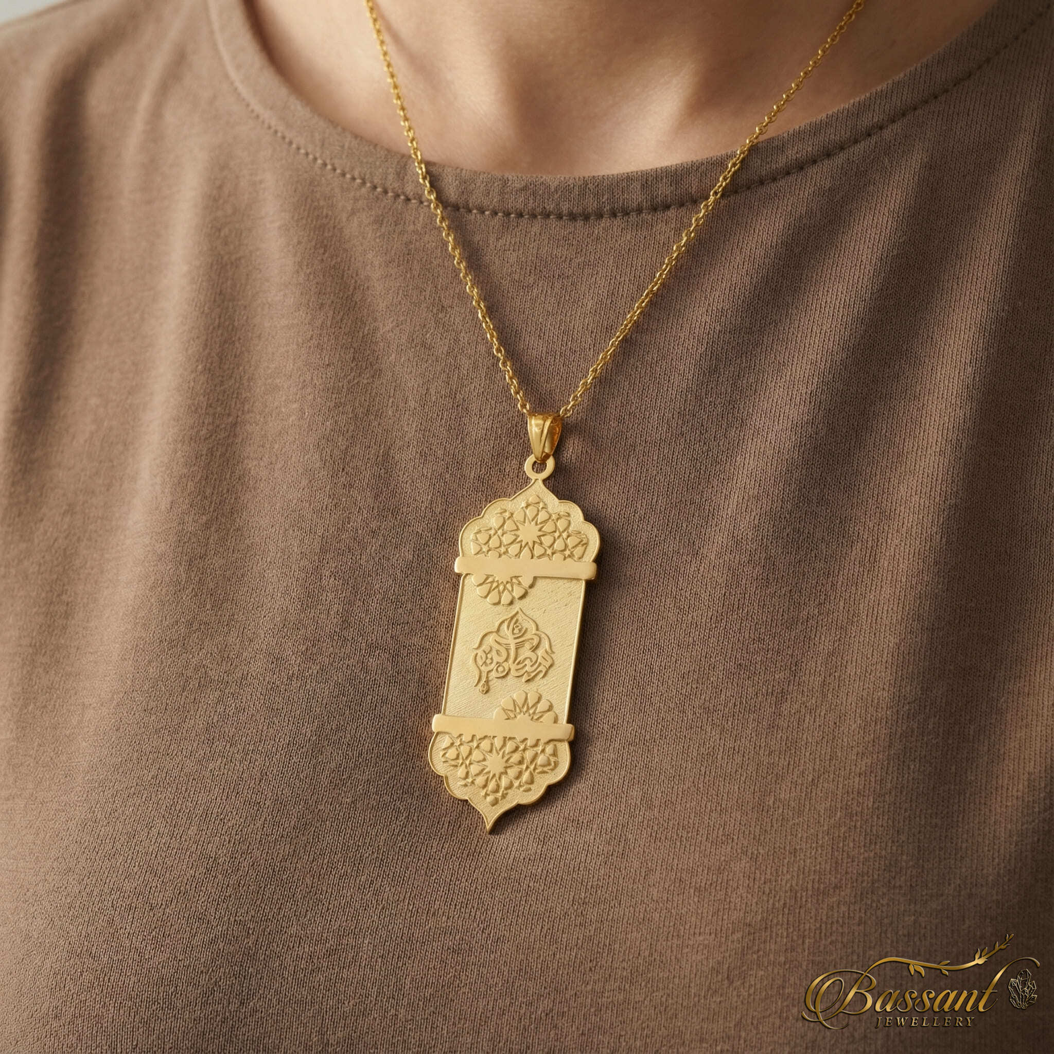 Expertly crafted with a 24k Gold-plated layer on 925k Sterling Silver, This pendant is a true masterpiece for lovers of Islamic art. The flawless laser-cut detail showcases " Ramadan Kareem " in an elaborate pattern, making it a stunning piece to add to any collection.