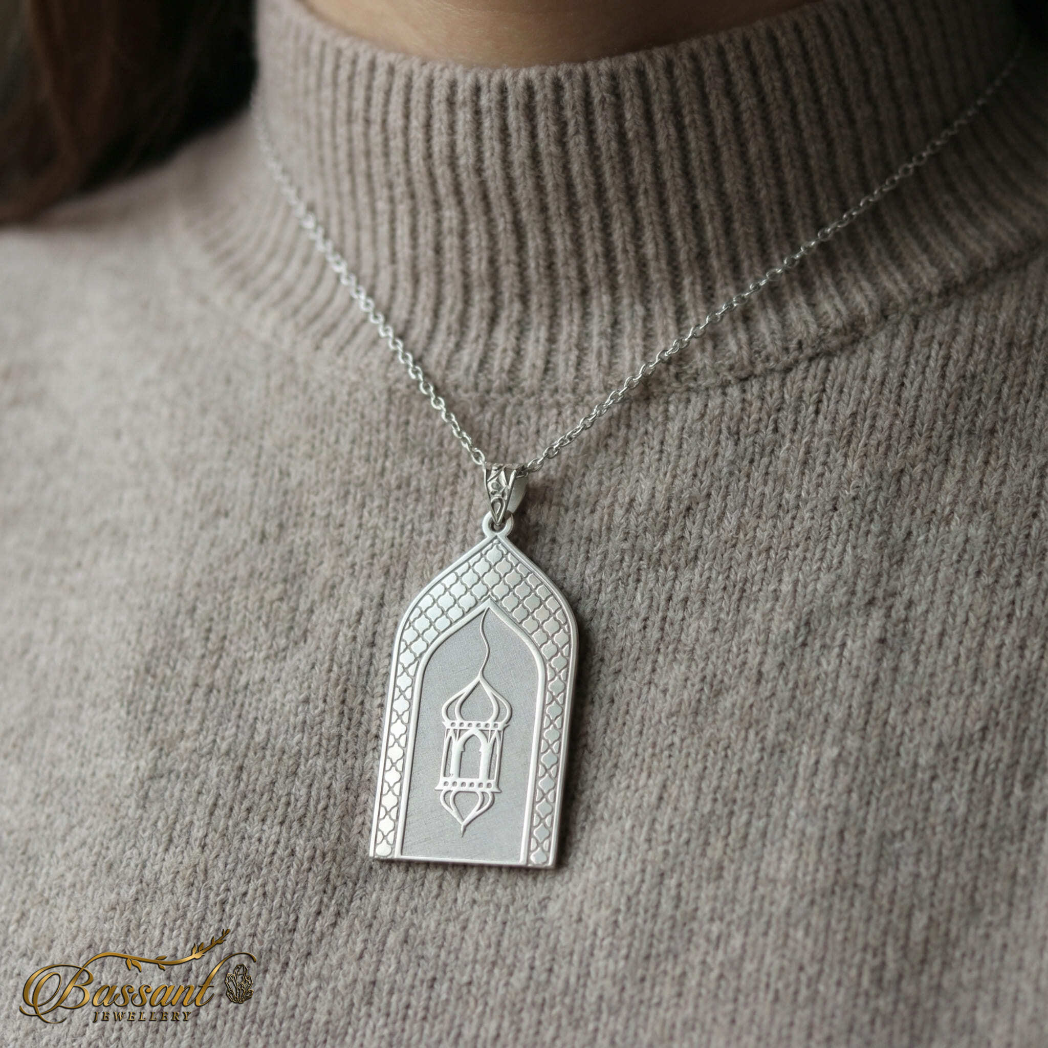 This finely-crafted pendant boasts exceptional artistry, featuring 925k Sterling Silver and expert laser-cutting methods. The elaborate pattern flawlessly displays " Ramadan Lantern ", Showcasing it as a masterpiece.