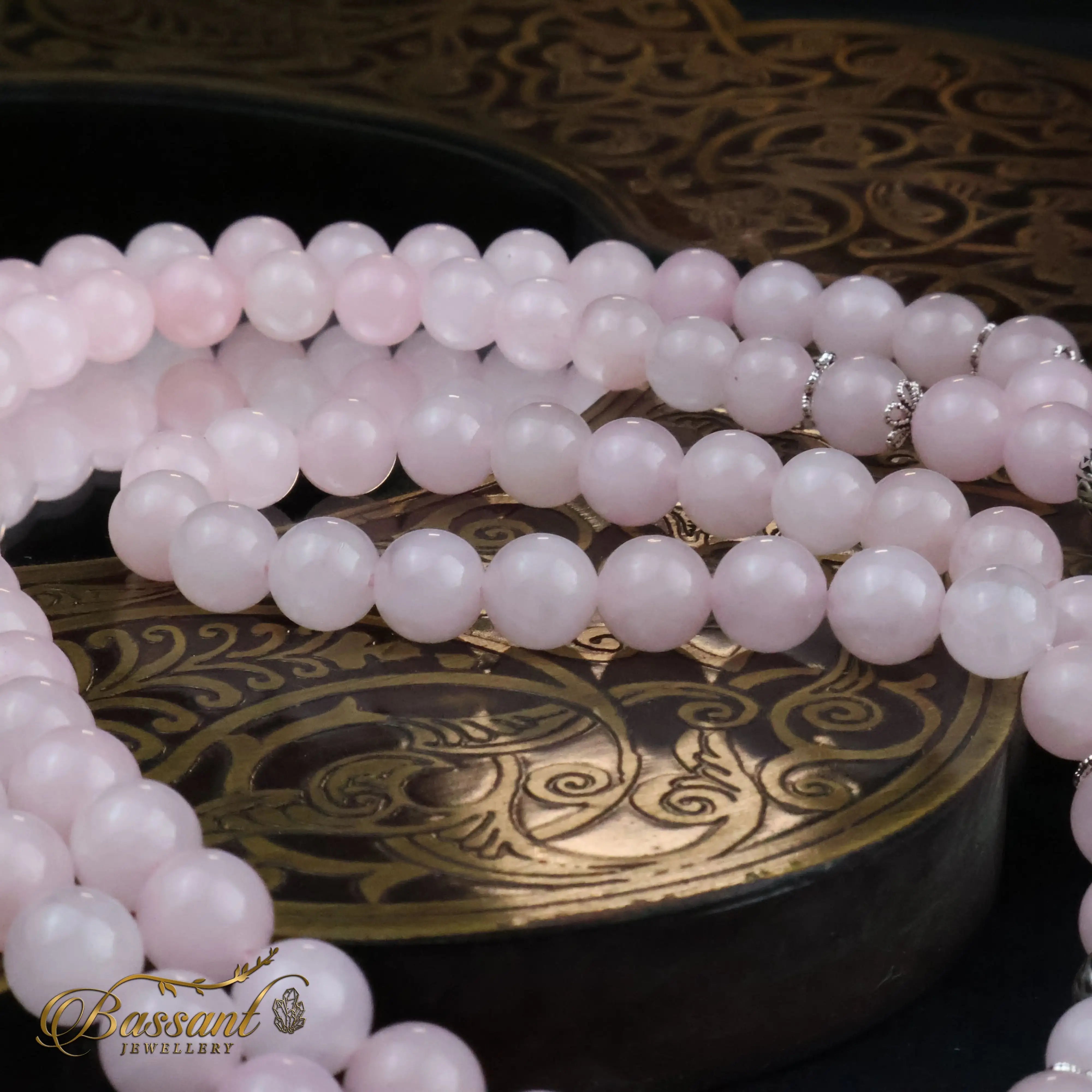 This rosary is meticulously crafted with the utmost precision, combining exceptional artistry and timeless elegance. The stunning Rose Quartz gemstone, paired with 925k sterling silver, creates a mesmerizing fusion of beauty and craftsmanship. Each bead of Rose Quartz is carefully selected for its soft pink hues, making each rosary a one-of-a-kind masterpiece.