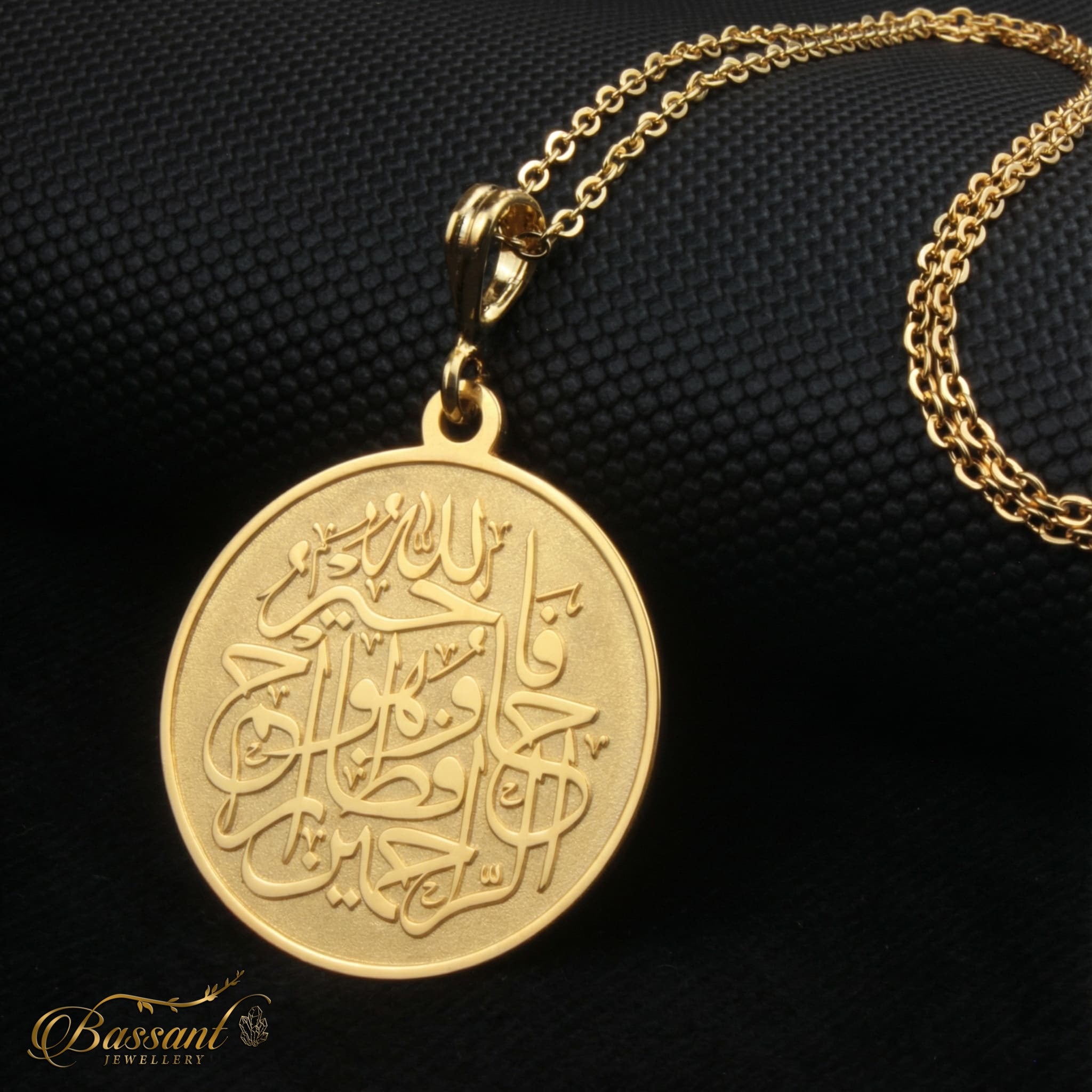Expertly crafted with a 24k Gold-plated layer on 925k Sterling Silver, This pendant is a true masterpiece for lovers of Islamic art. The flawless laser-cut detail showcases the beautiful Aya from " Surat Yousuf " in an elaborate pattern, making it a stunning piece to add to any collection.