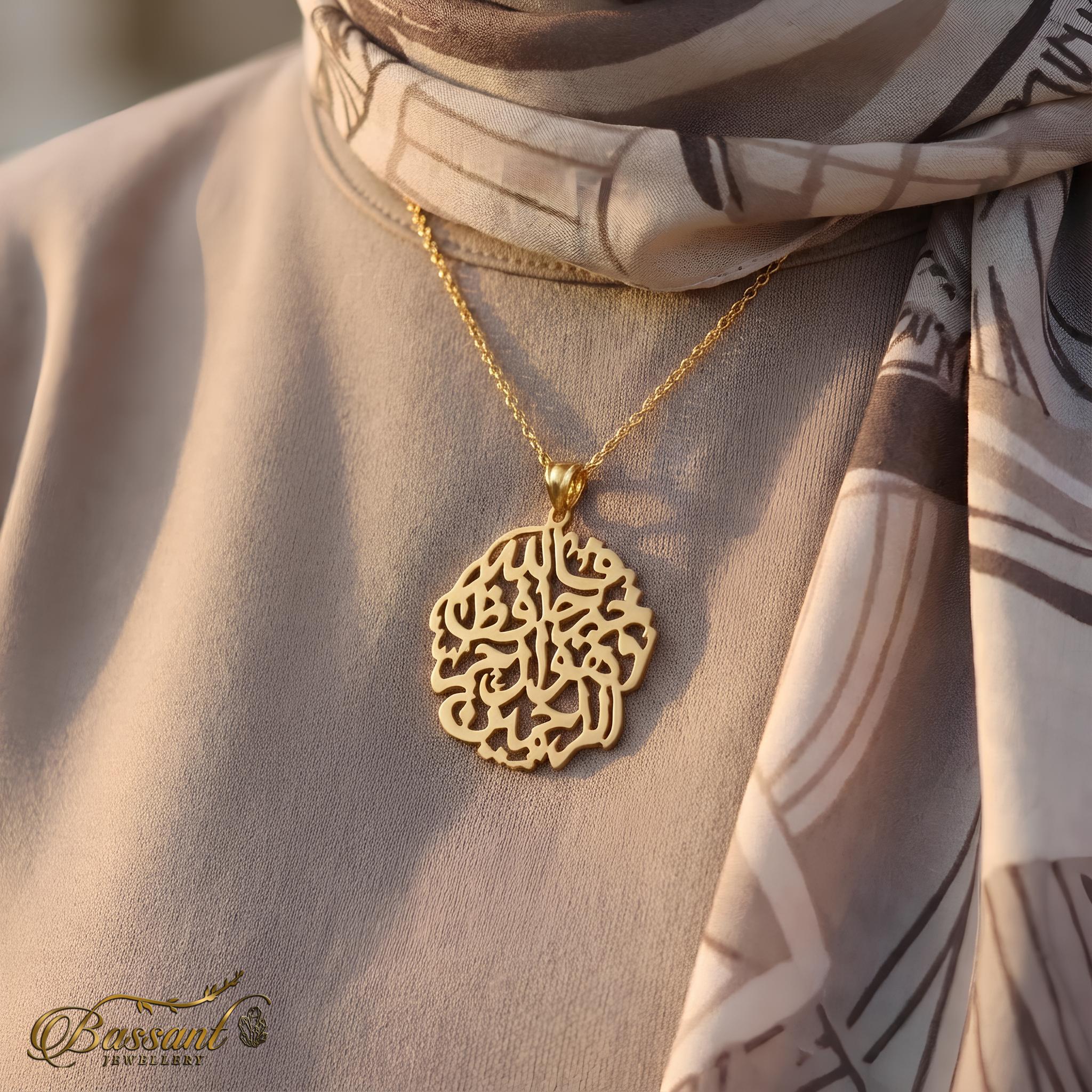 Expertly crafted with a 24k Gold-plated layer on 925k Sterling Silver, This pendant is a true masterpiece for lovers of Islamic art. The flawless laser-cut detail showcases the beautiful Aya from " Surat Yousuf " in an elaborate pattern, making it a stunning piece to add to any collection.